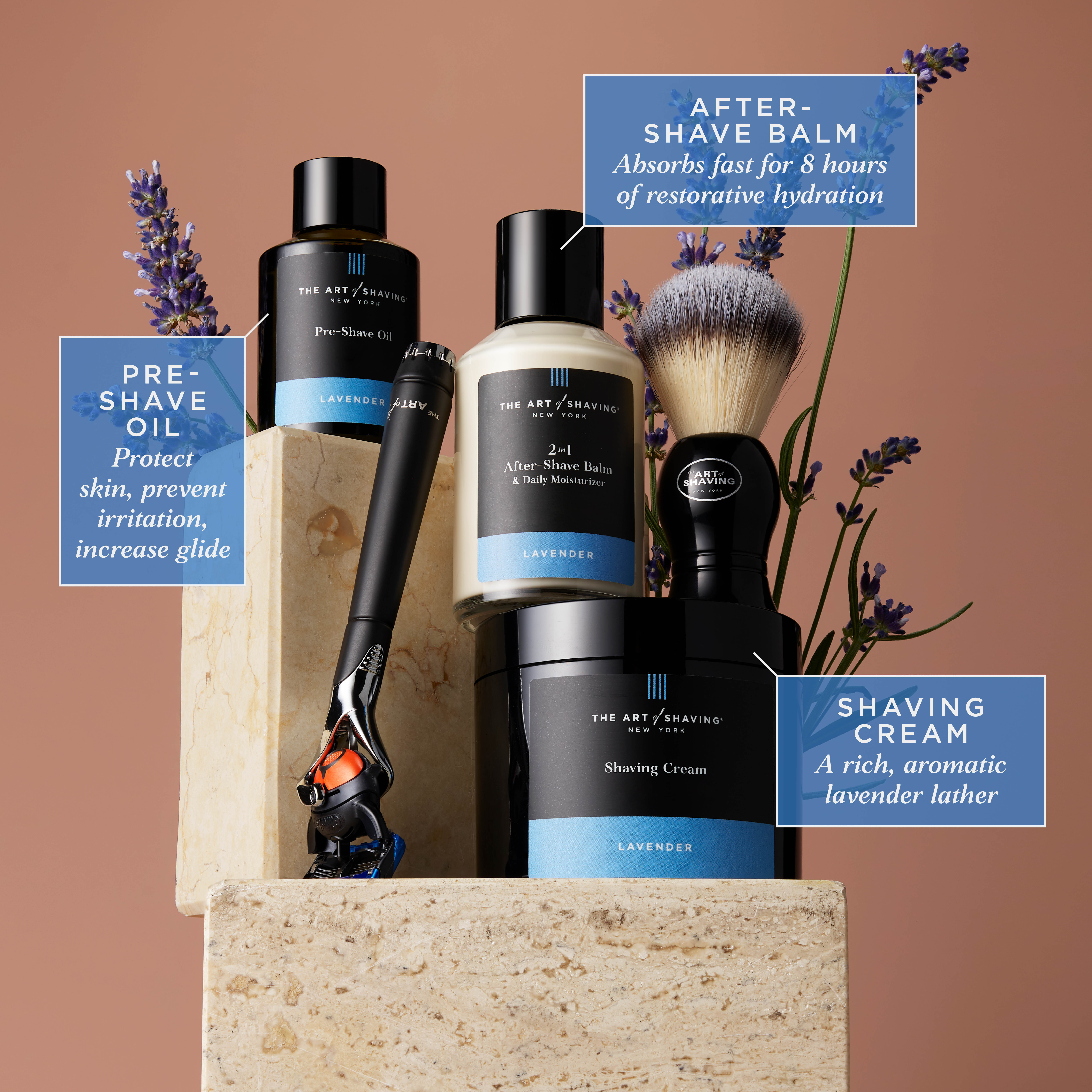Art direction for the relaunch of The Art of Shaving— a high-end men's shaving and skincare brand that elevates shaving from an act to an art.